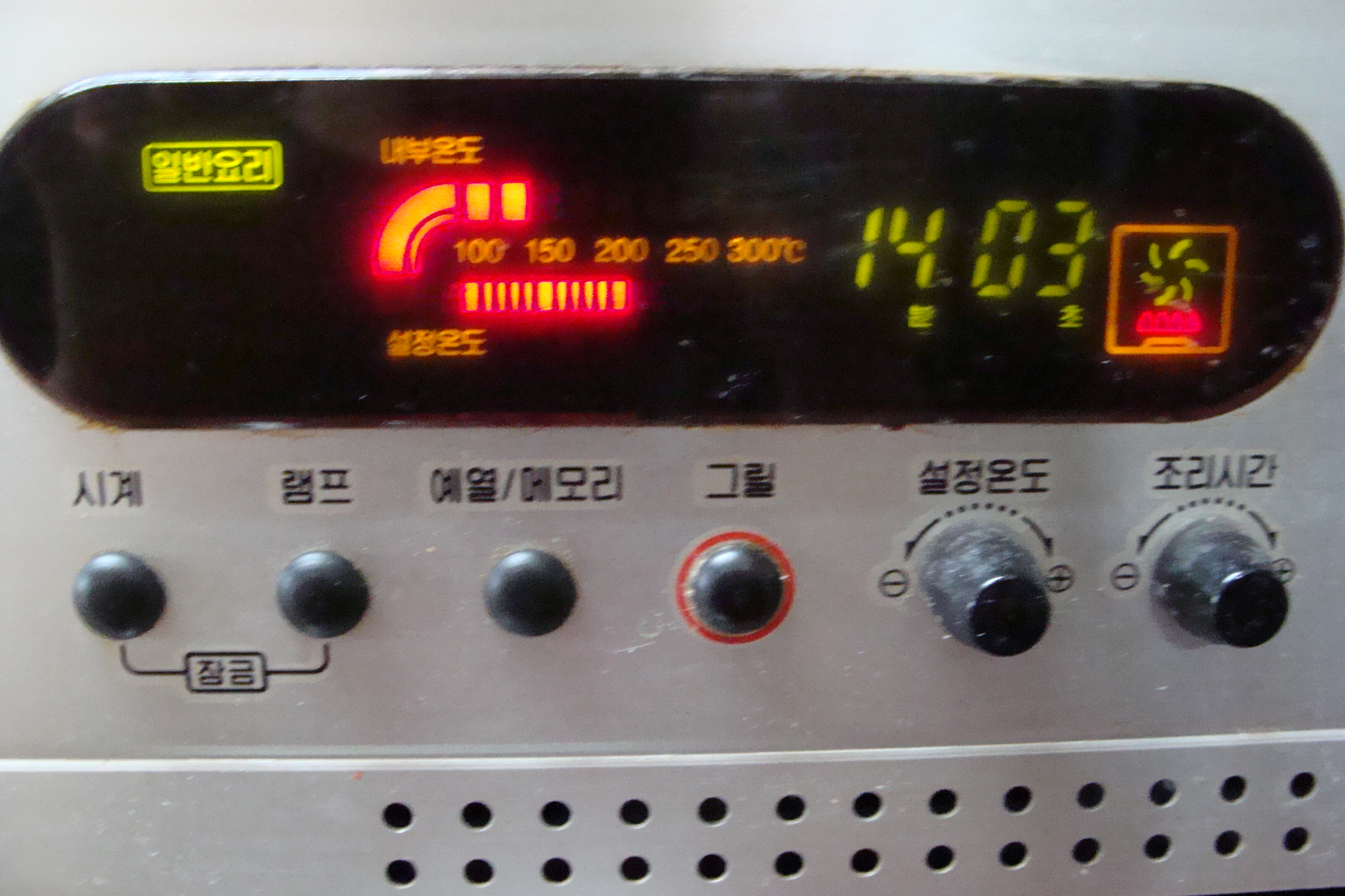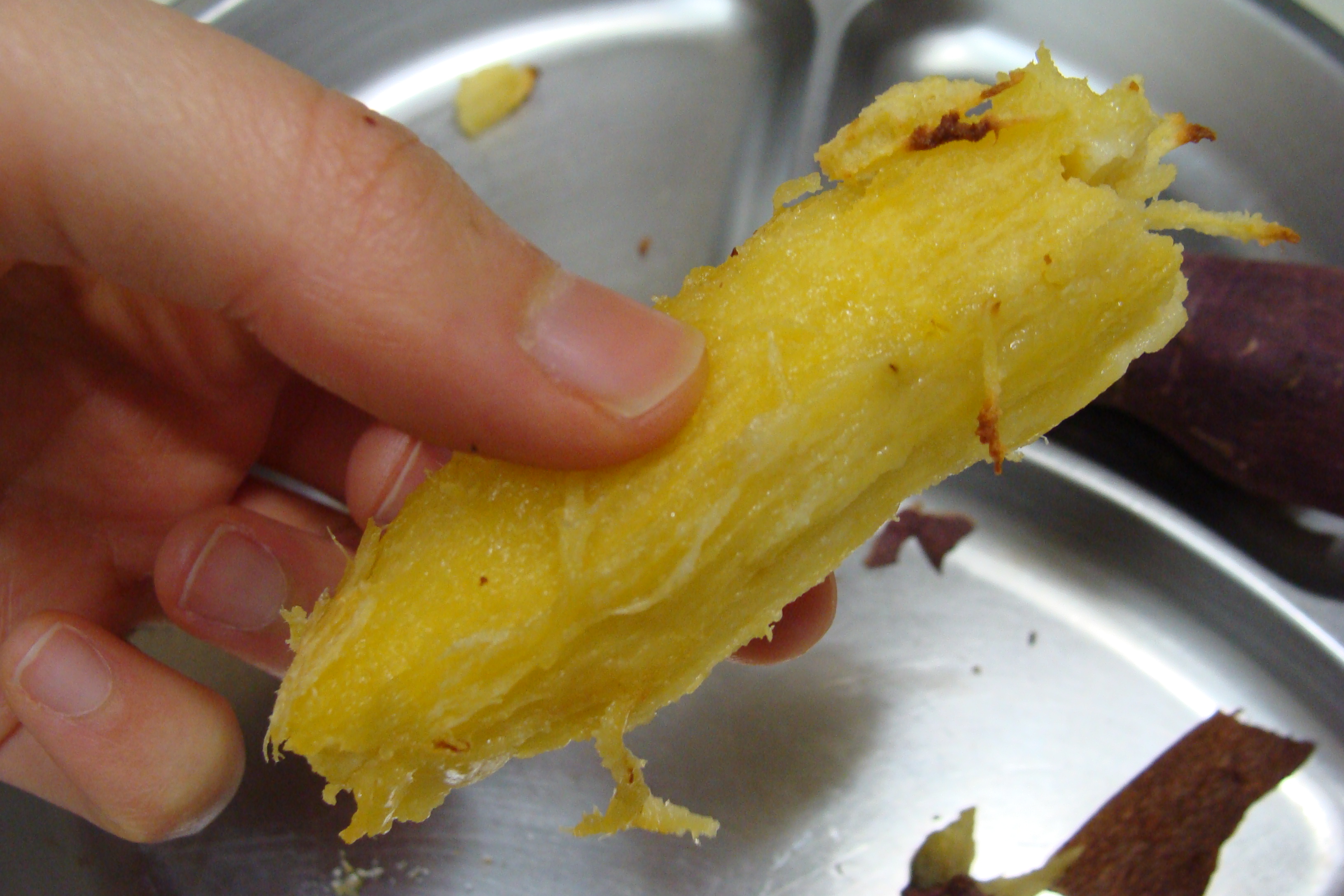 예열이 끝나면 고구마를 오븐에 넣어주세요.