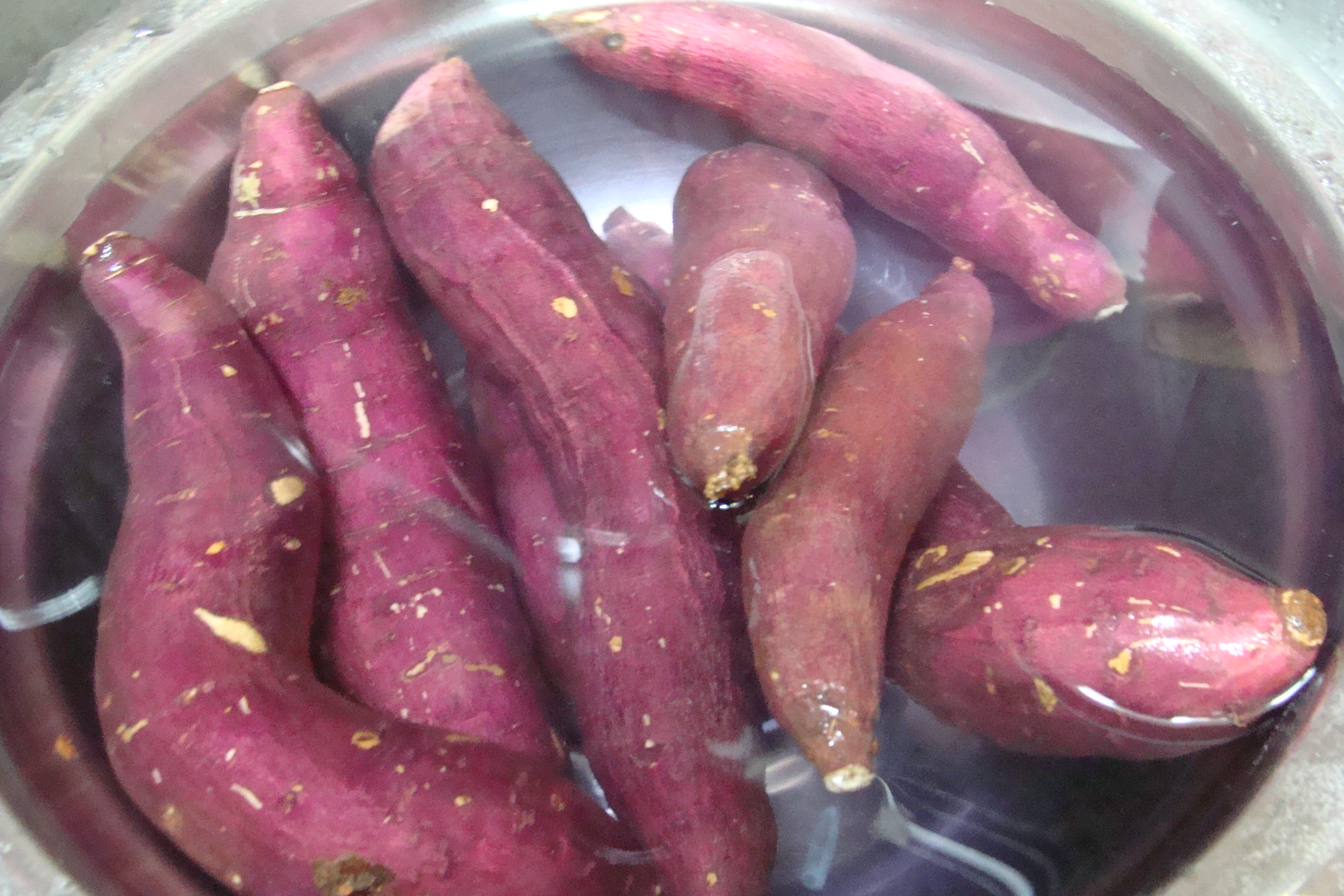 오븐 예열되는 동안 고구마를 물에 담가주세요.