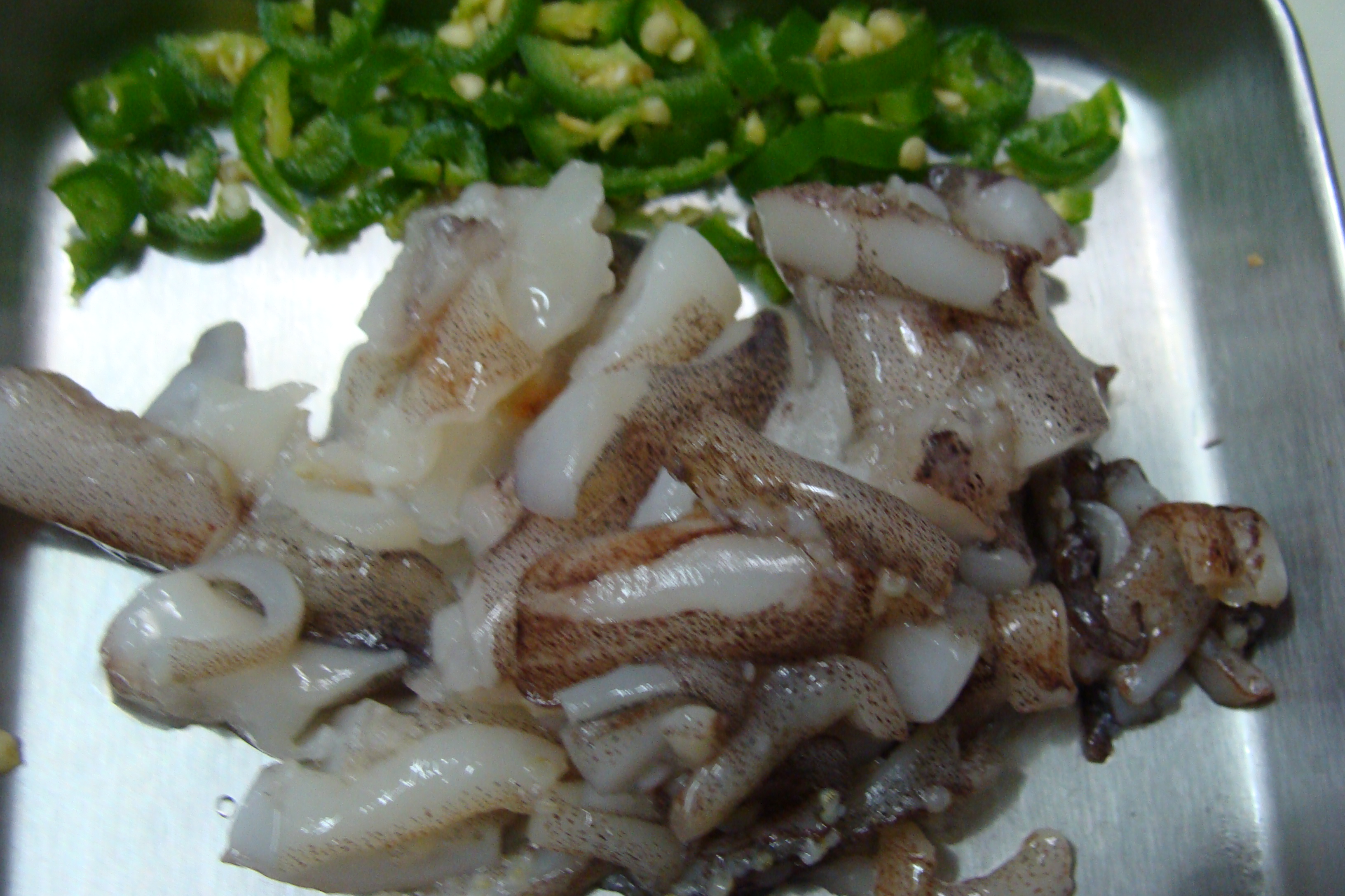 해동시킨 오징어 한입 크기로 썰어주세요.