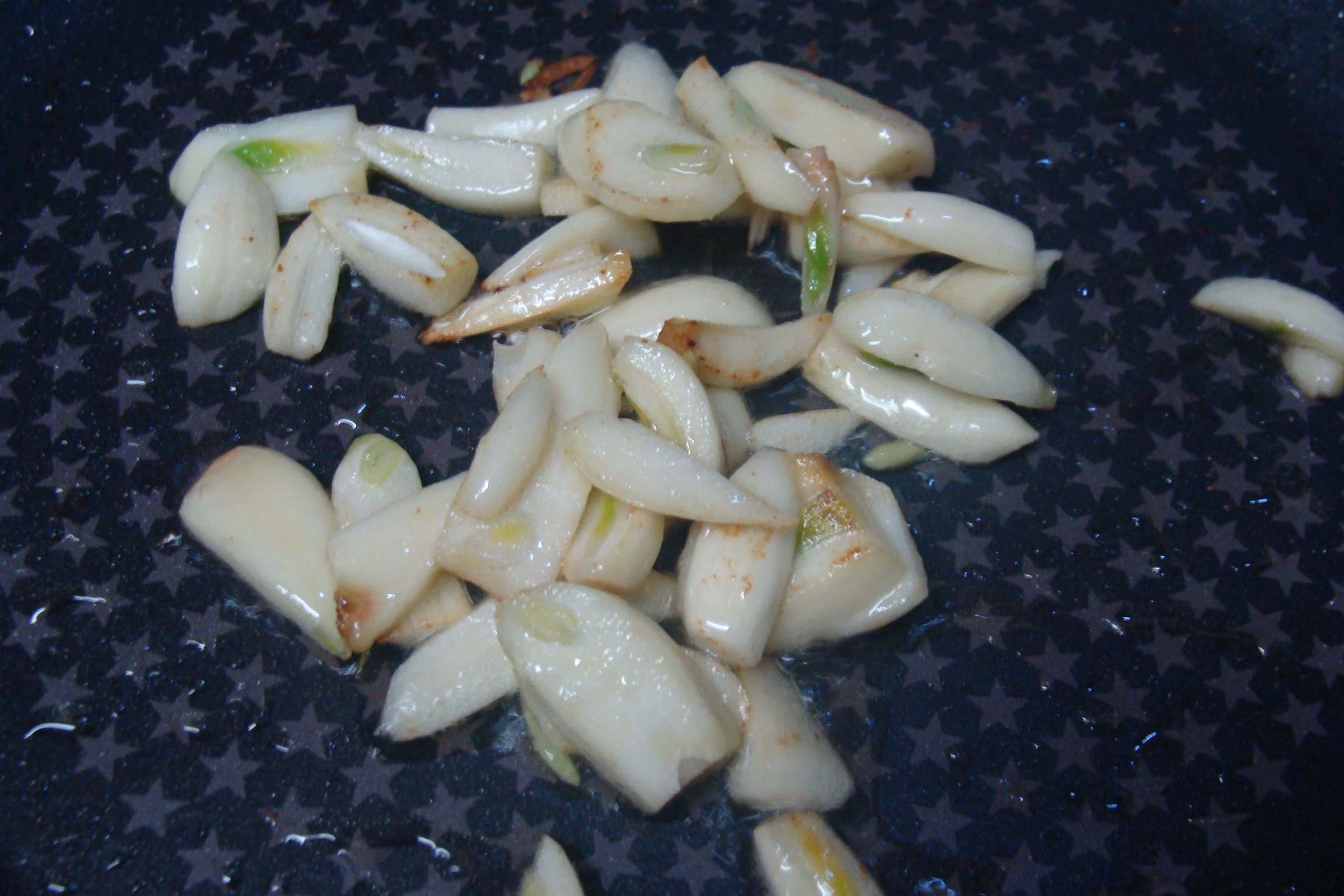 같은 팬에 기름 더 두르고 마늘 노릇노릇 볶아줄게요~
