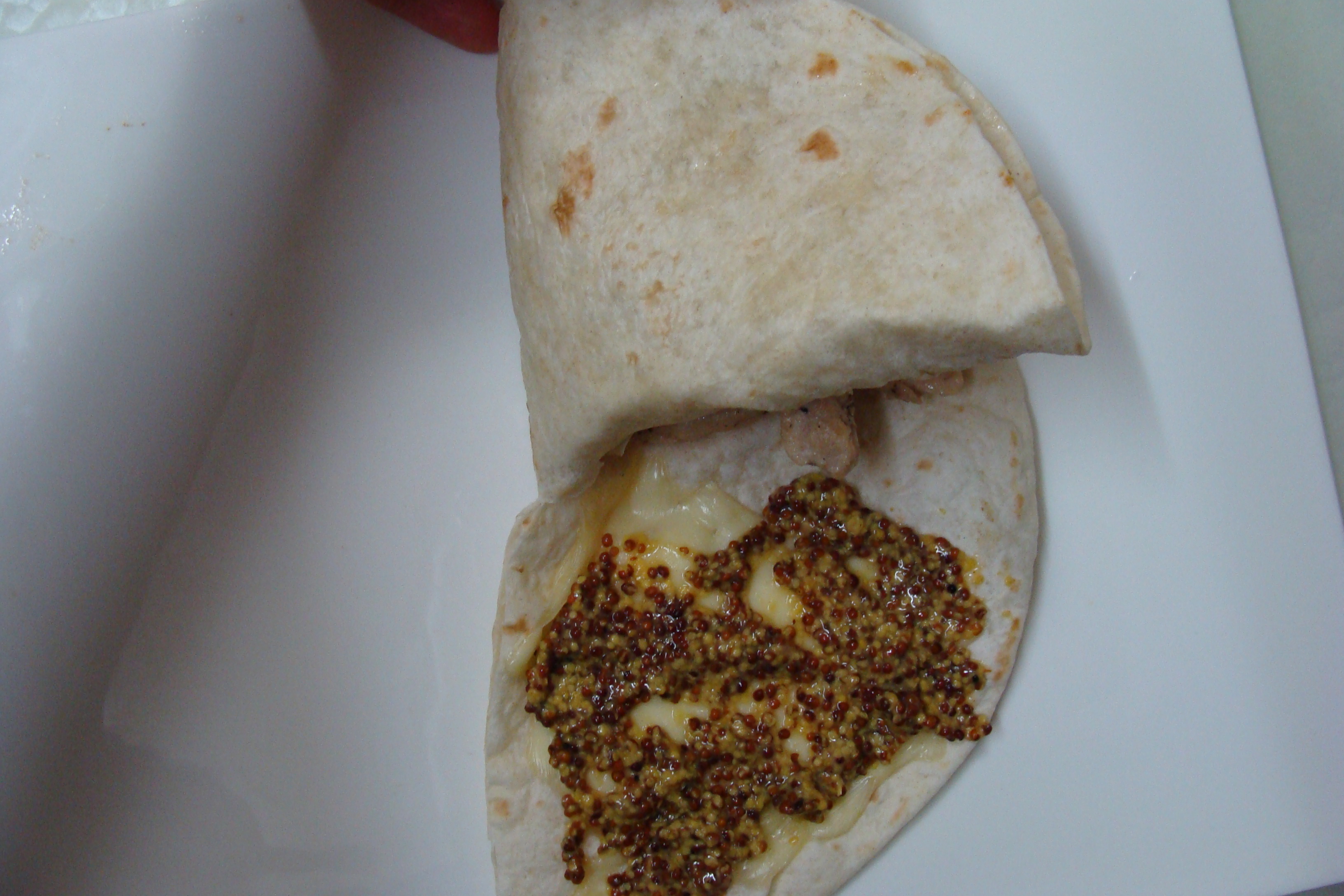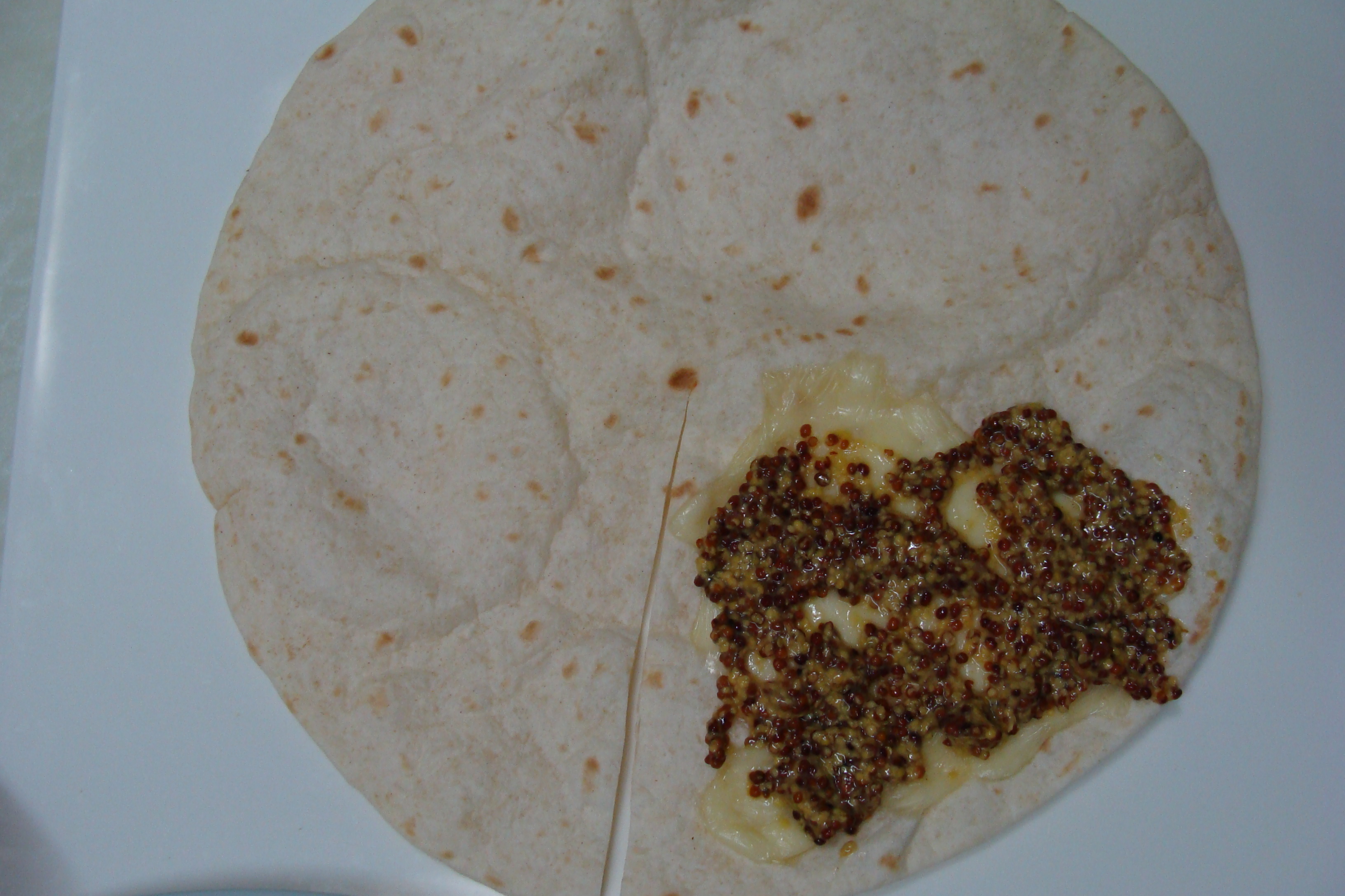 녹은치즈 위에 홀그레인머스타드 발라주시고