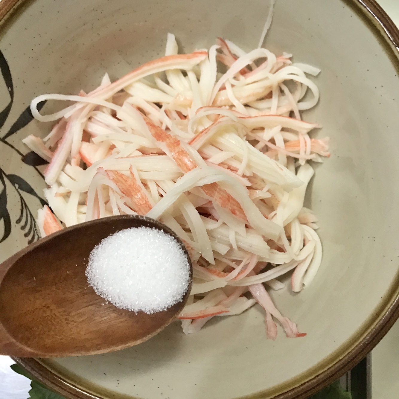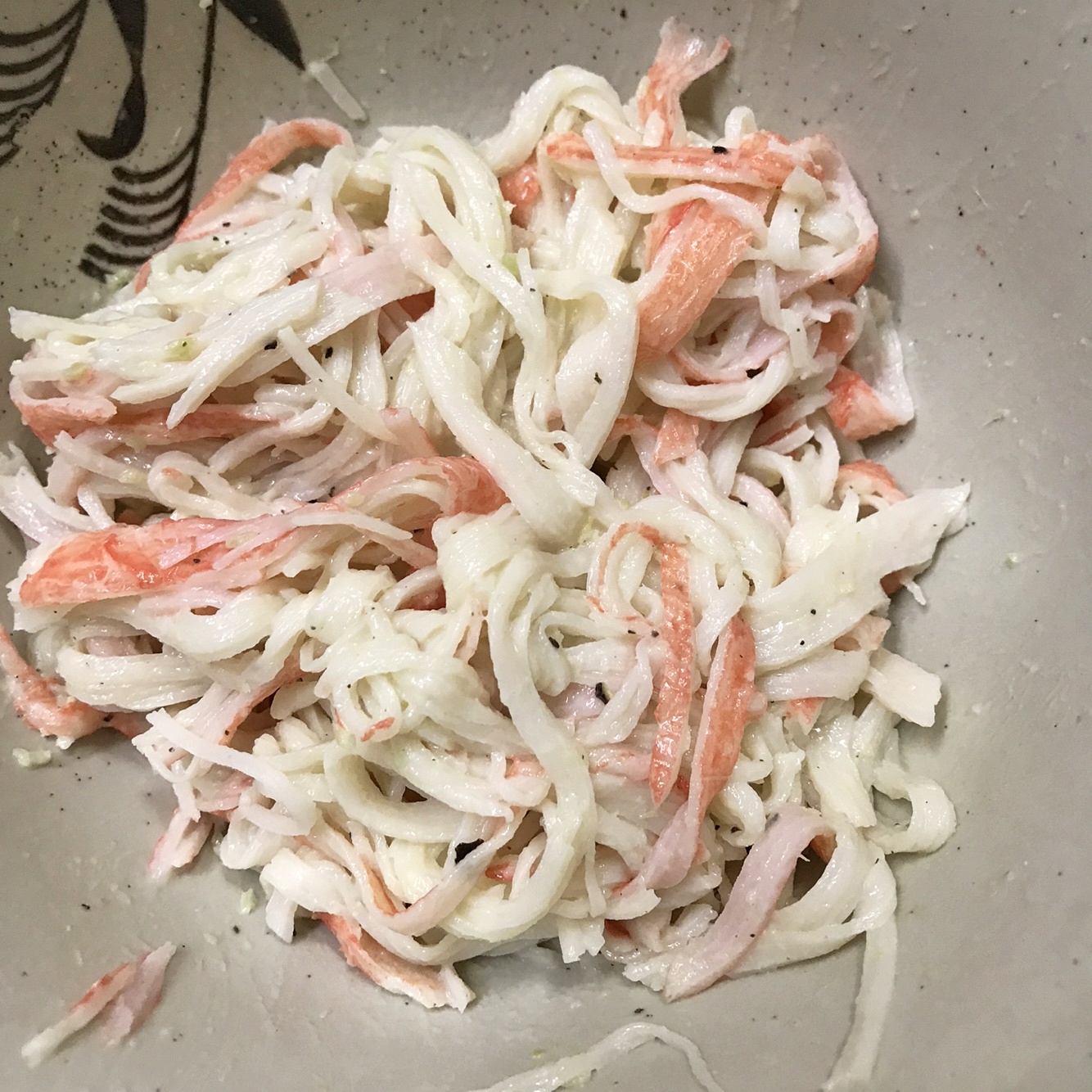 손으로 조물조물 크래미가 뭉치지 않도록 섞어주세요