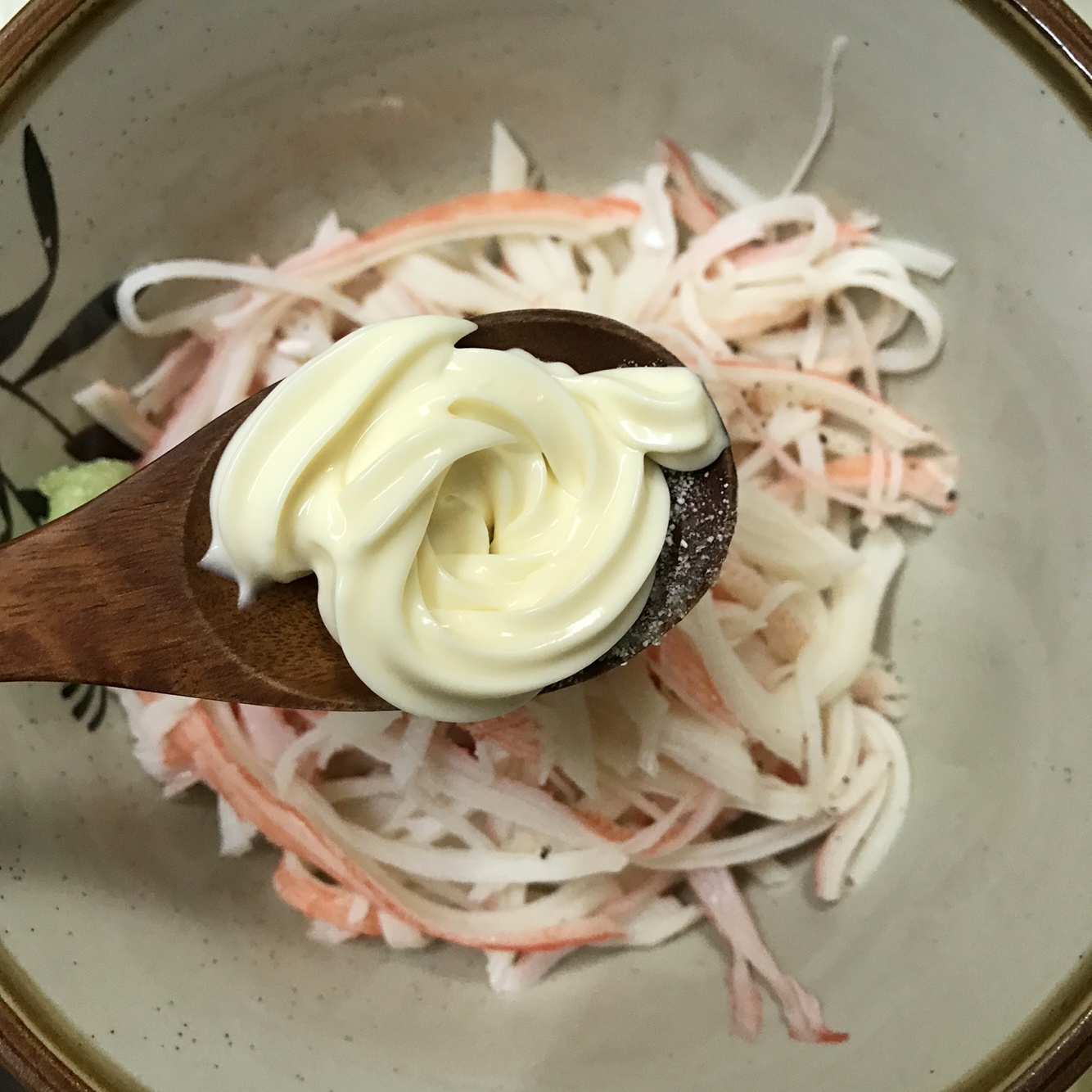마요네즈1스푼 와사비 1/2스푼 소금1/3스푼 설탕1/4스푼 후추