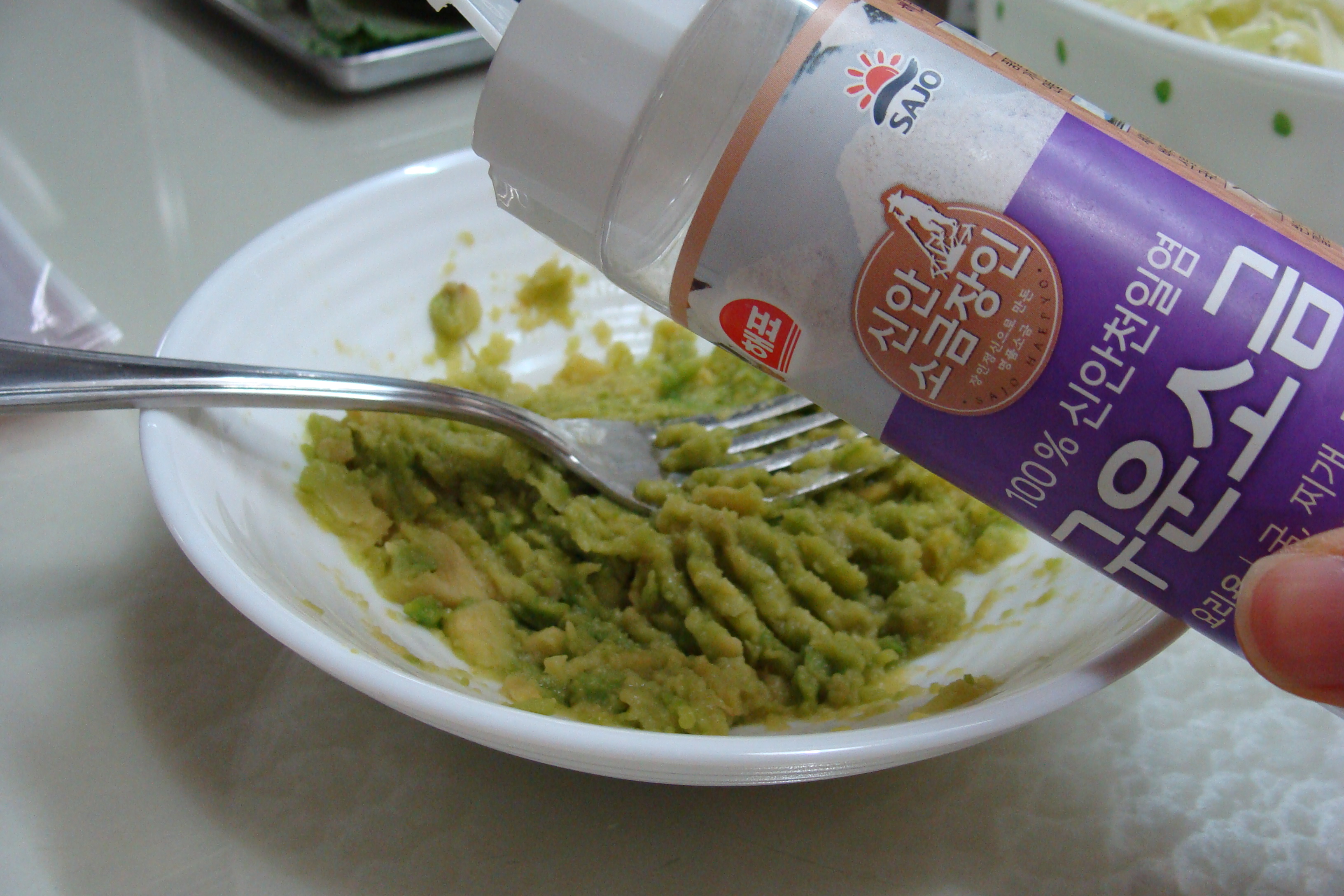 냉동아보카도 전자레인지에 돌려서 녹인다음 포크로 으깨고