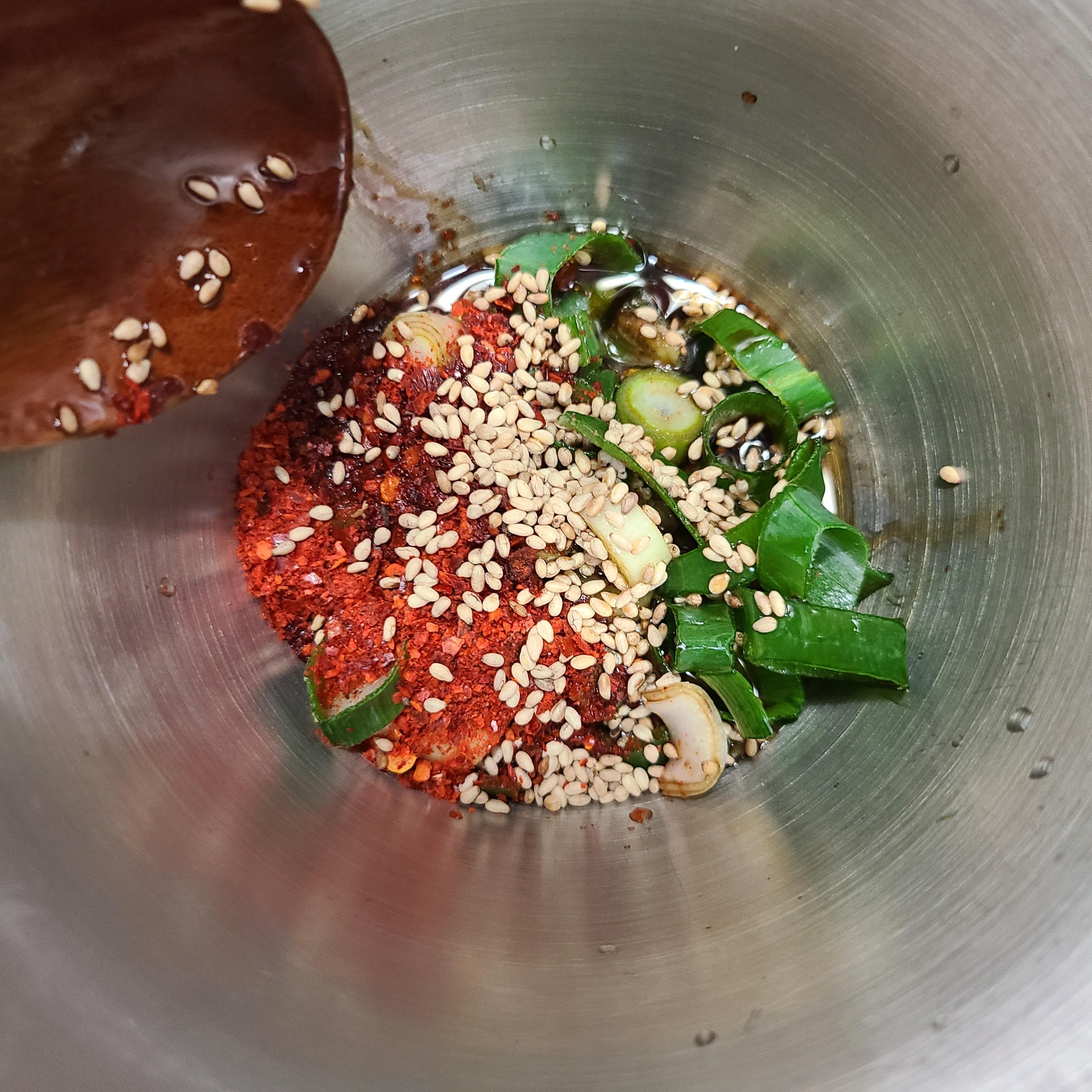 진간장 2 다진마늘 1 깨 조금 넣고 섞어주면 완성~