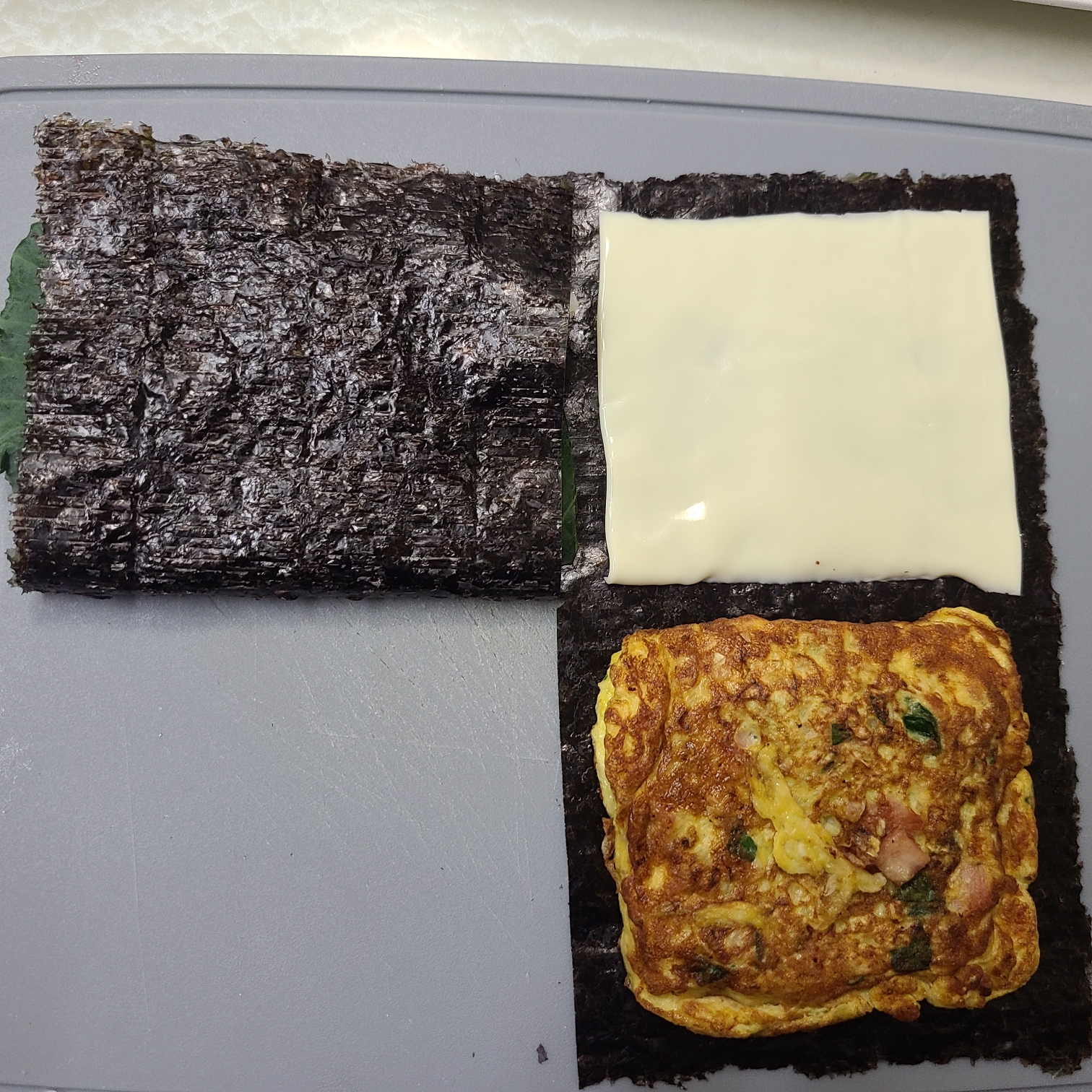 김과 재료가 잘 붙을 수 있게 잠시 눌러주시면