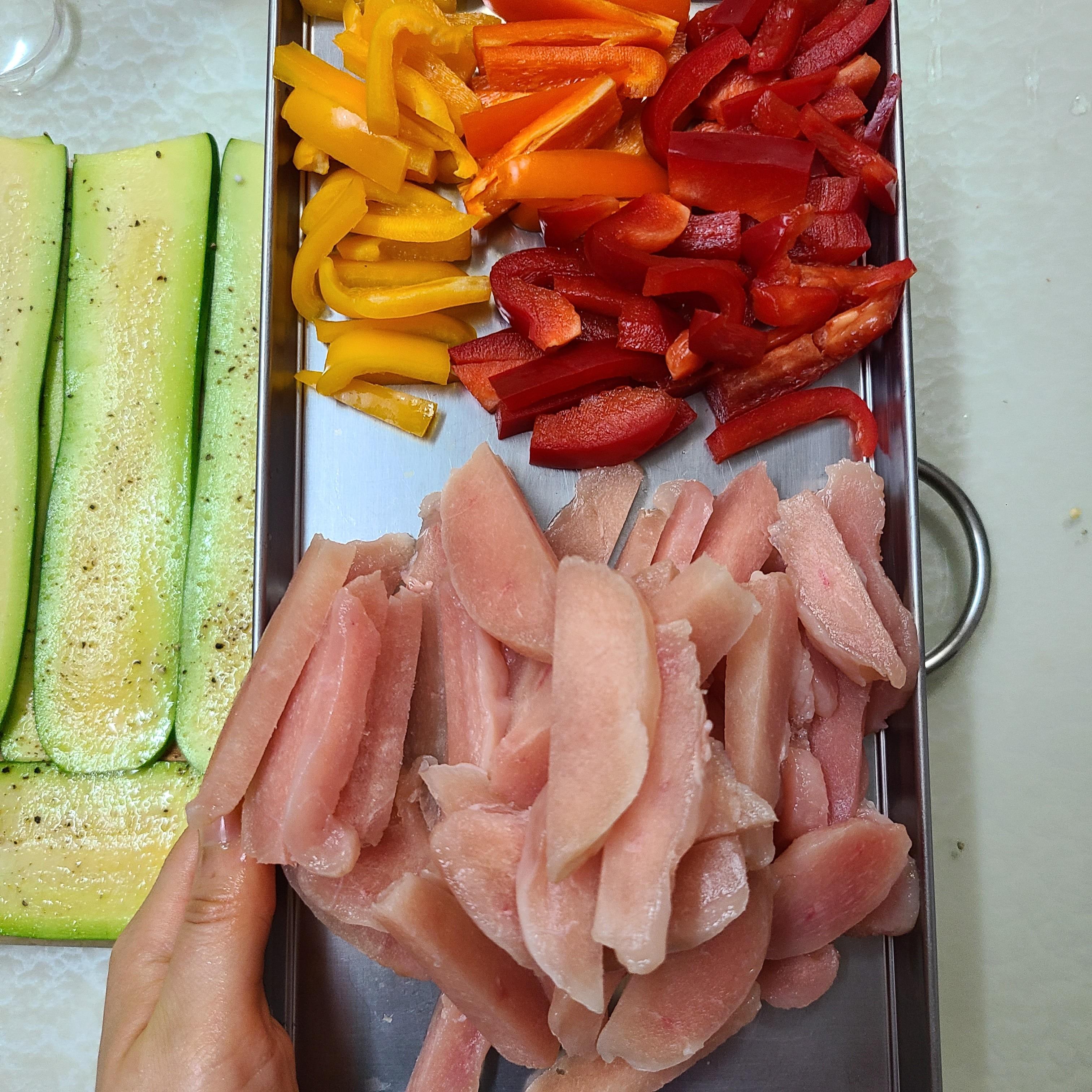 10분 기다리는 동안 파프리카 채 썰어주시고