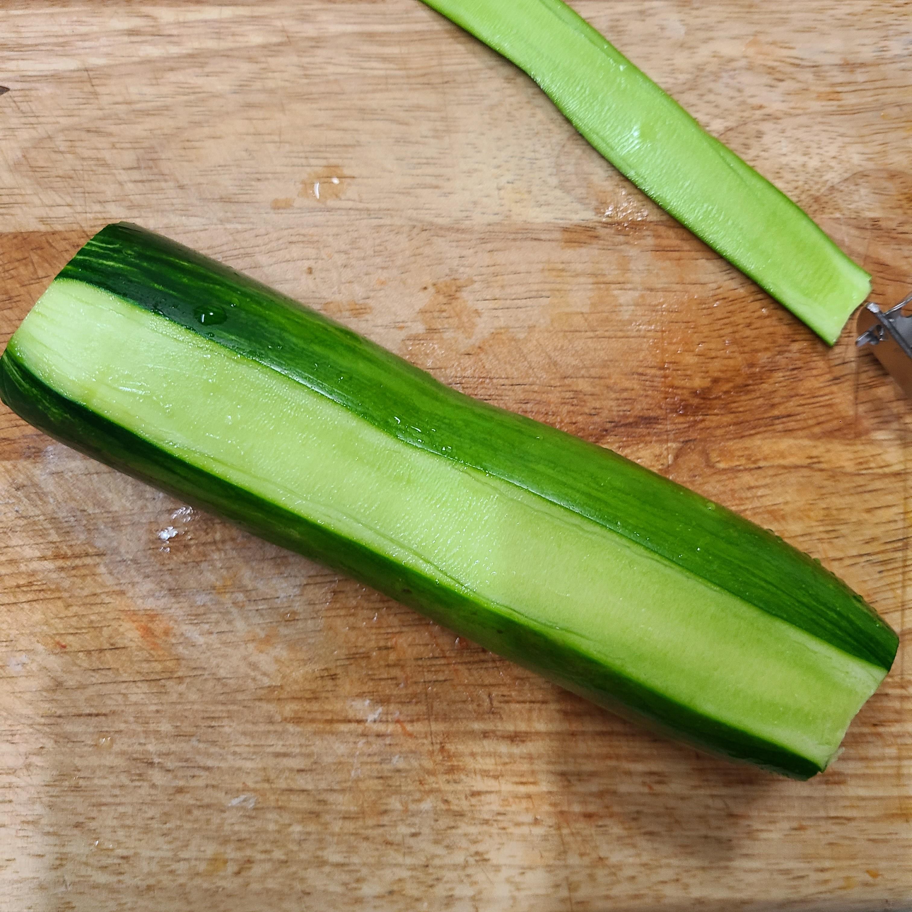 안 흔들리도록 잘 잡고 감자칼로 슥슥 썰어주세요.