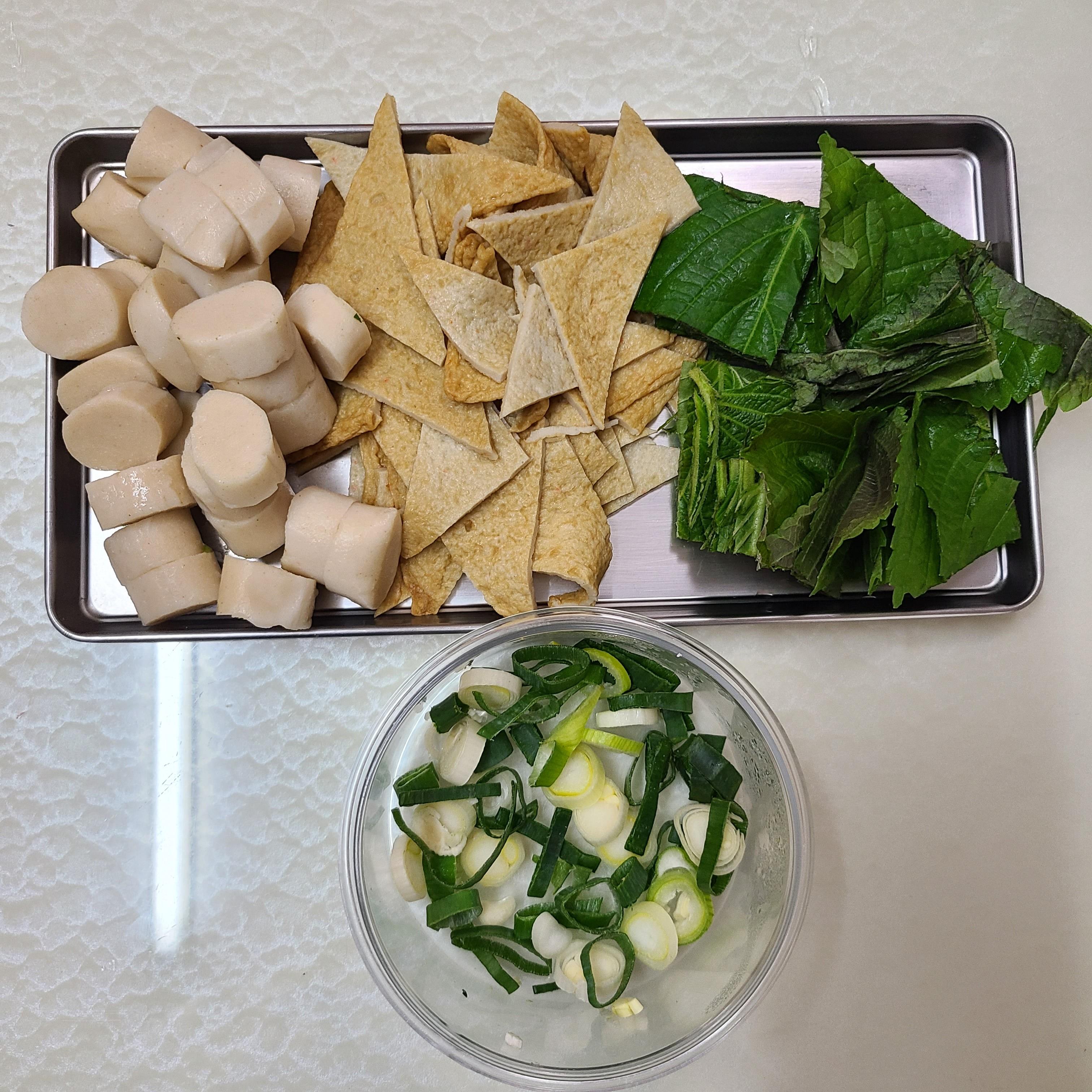 초초간단 떡 어묵 깻잎 파 준비 끝!