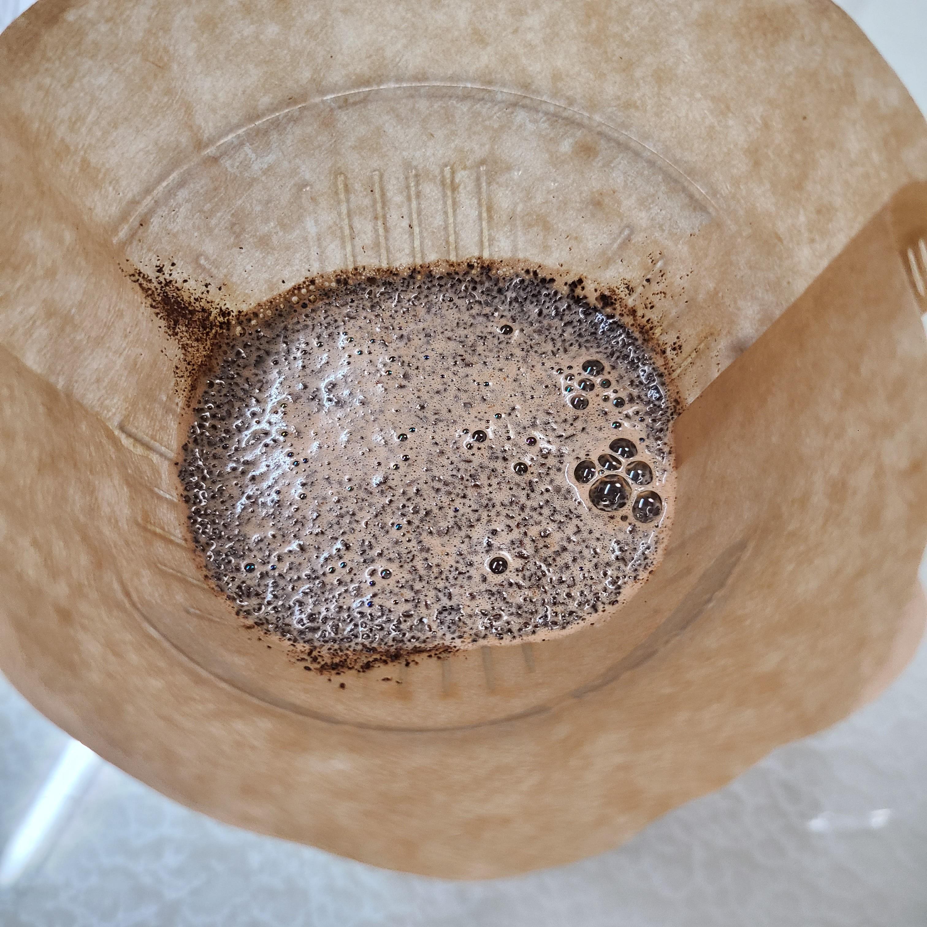 드리퍼에 필터 끼우고 물 부어서 필터 적셔주세요