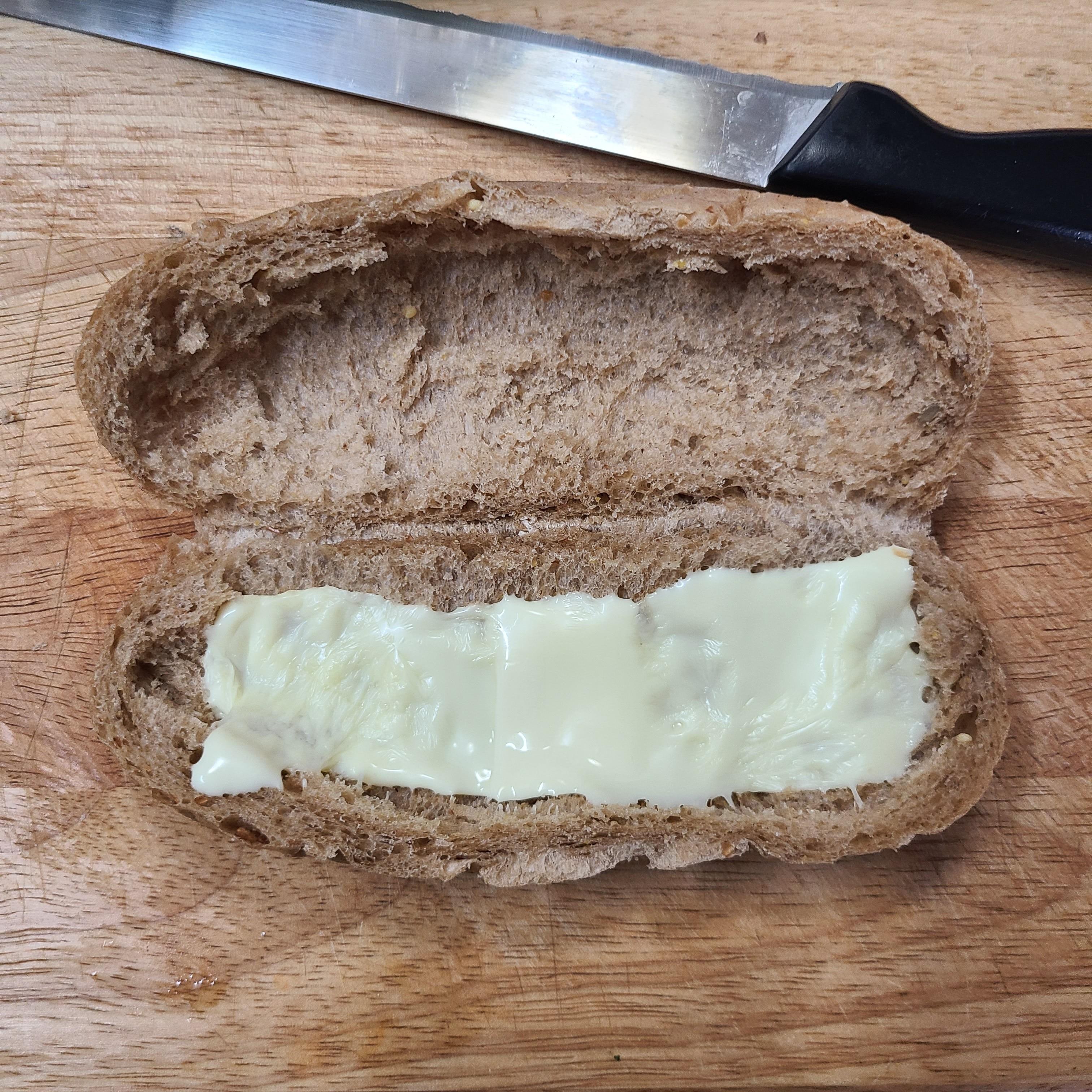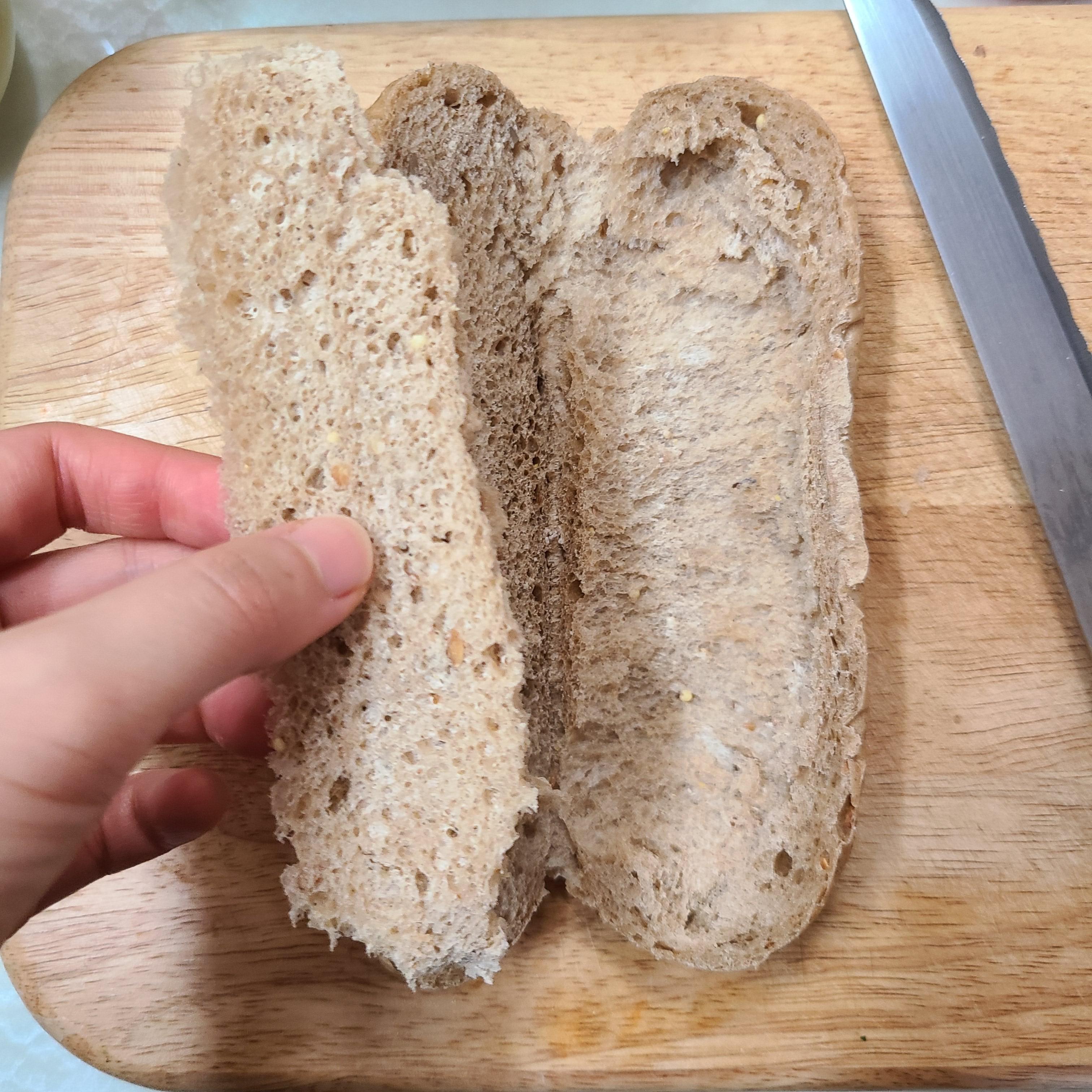 해동된 빵을 반으로 갈라서 속을 파내 주세요~