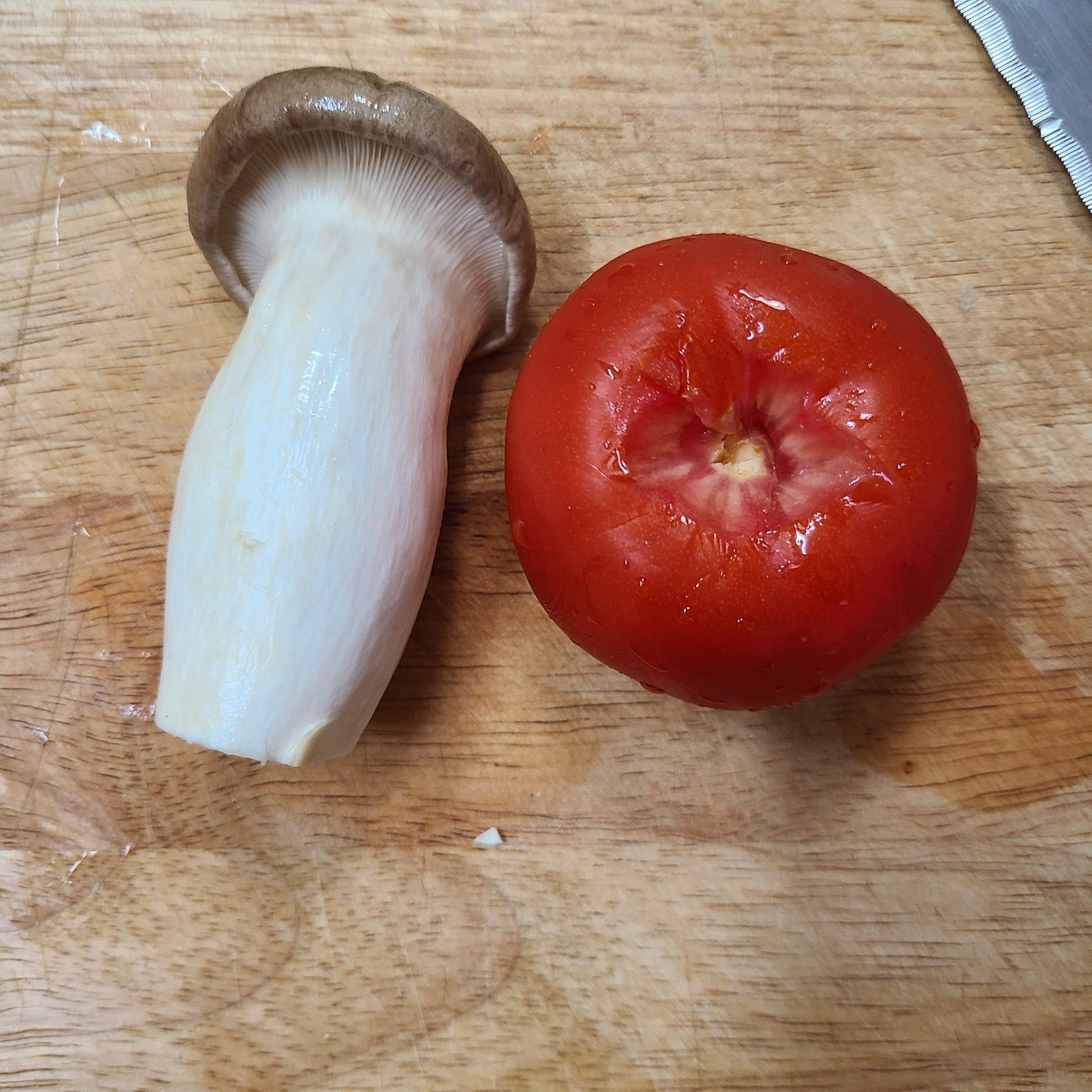 버섯 나란히 눕히고 토마토 올려주세요