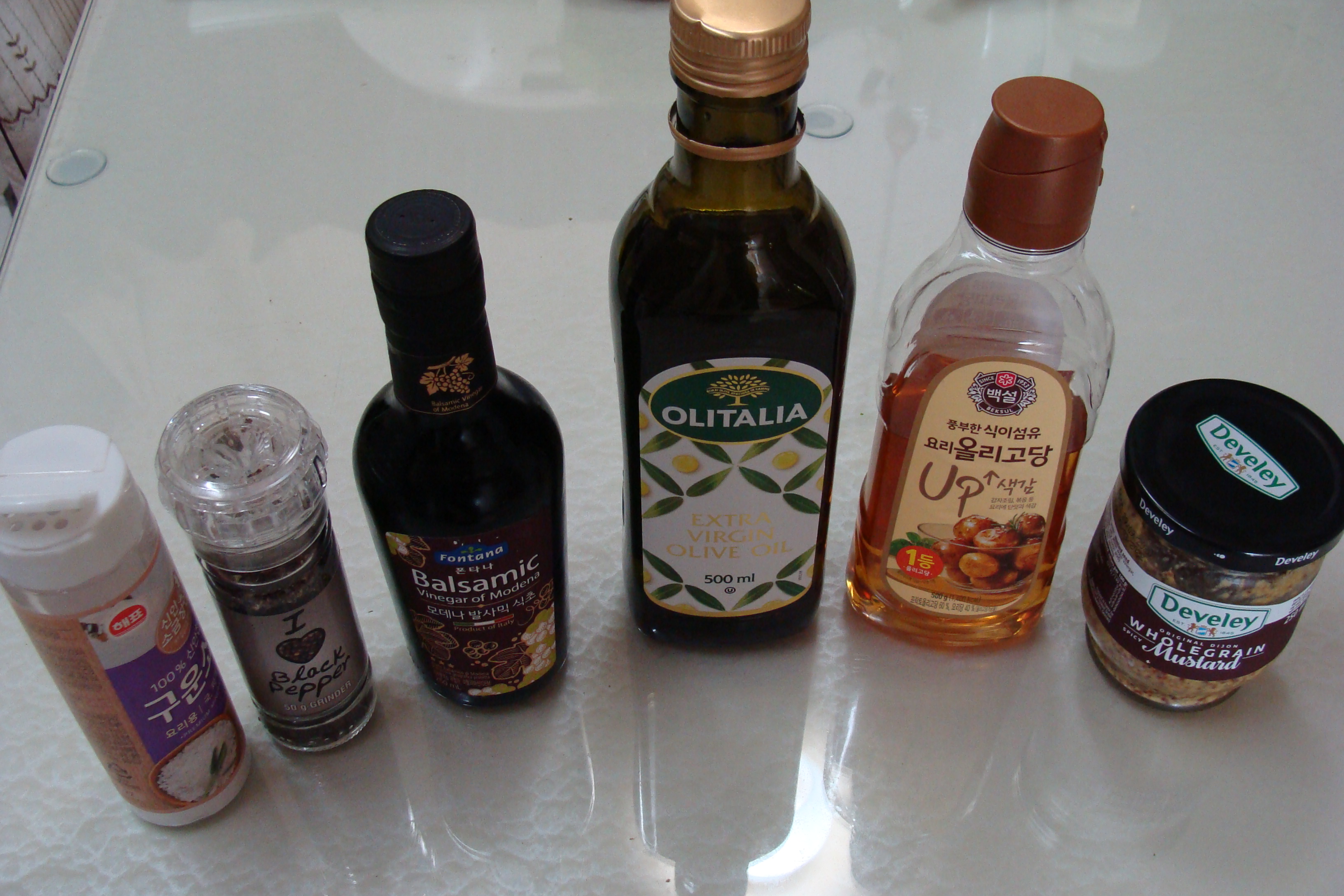 올리브유(엑스트라 버진) 2스푼 발사믹 식초 2스푼