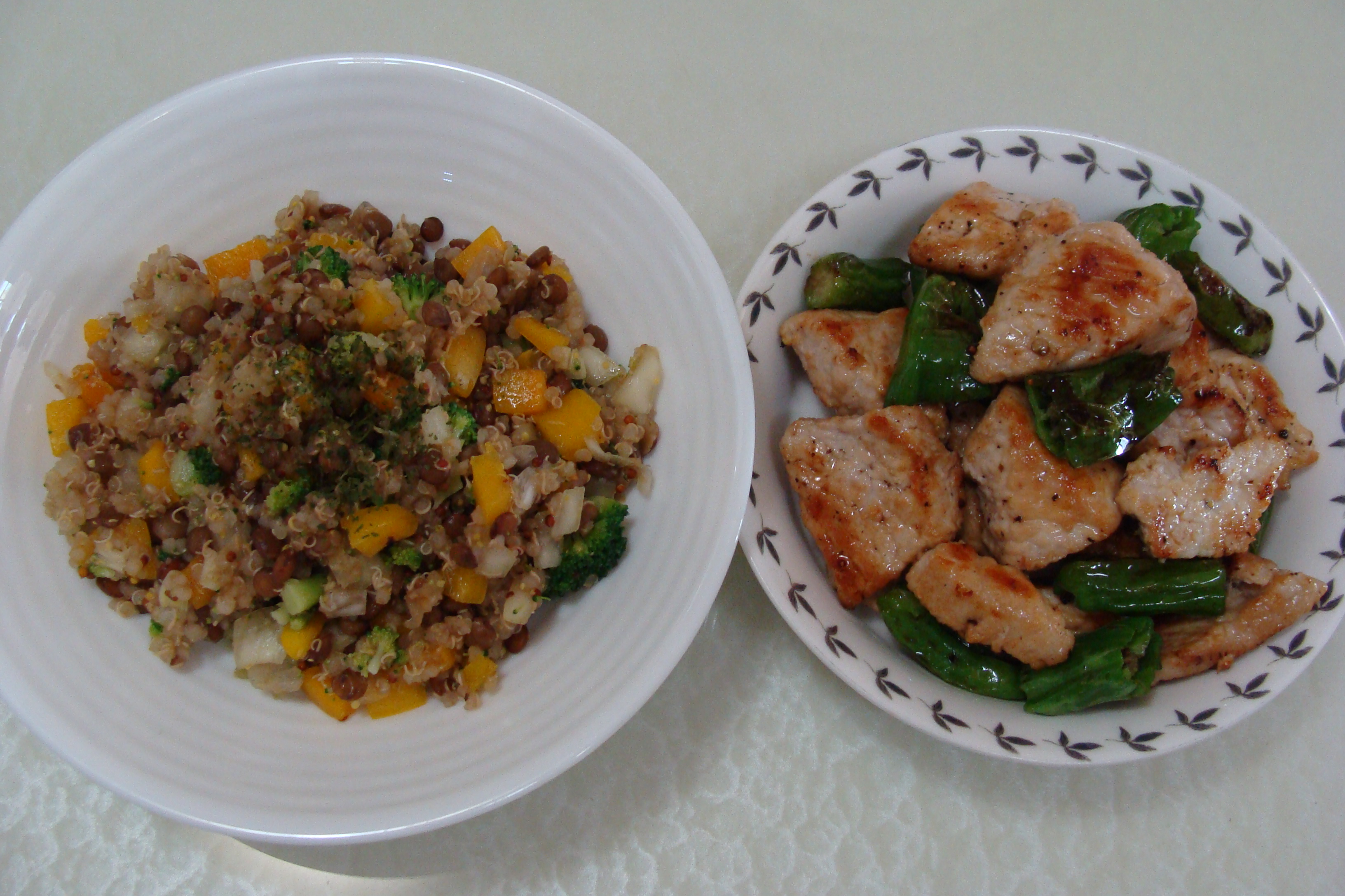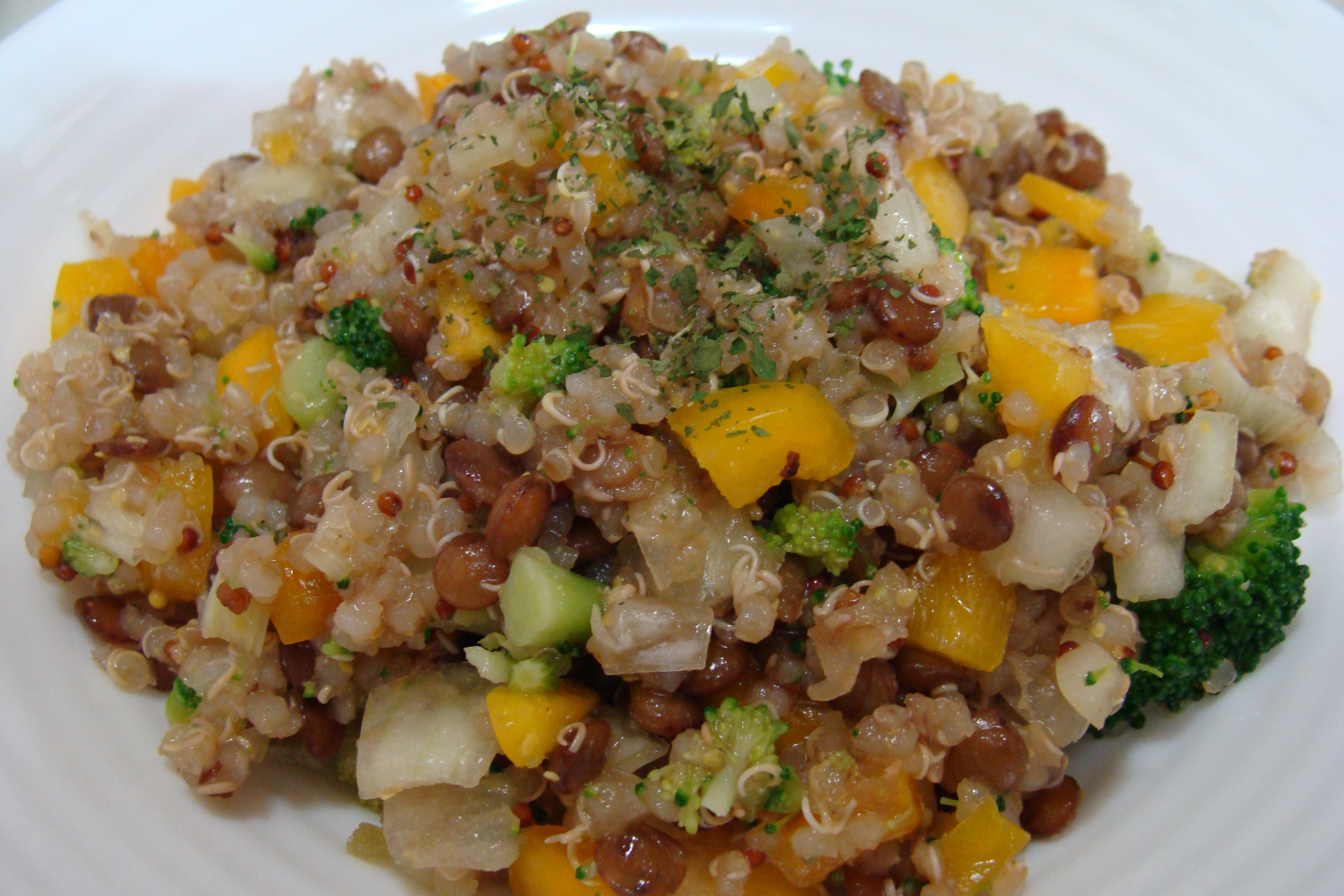 렌틸콩 퀴노아와 야채를 1:1 비율로 섞어줬어요.