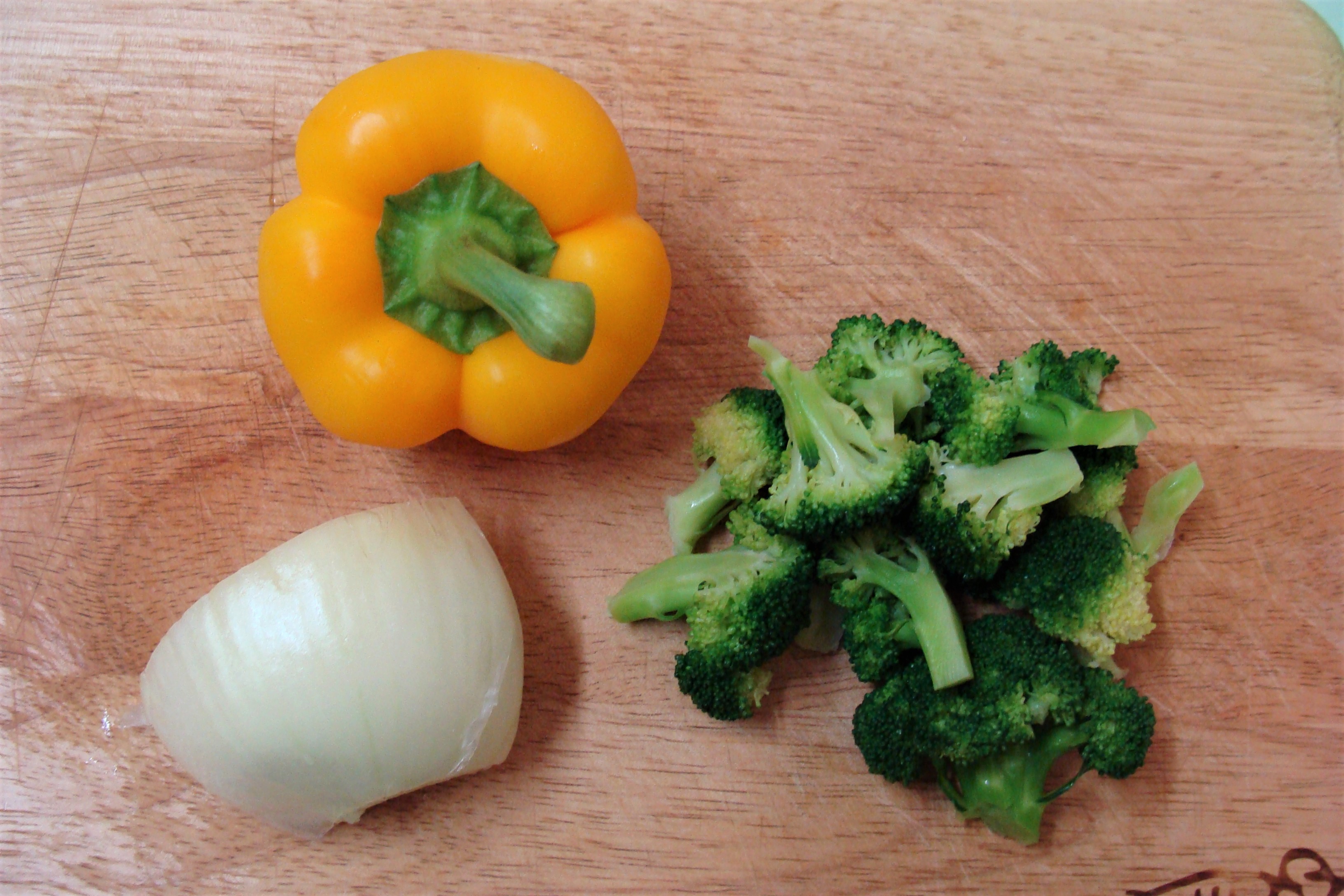 양파 1/2개 파프리카 작은 거 1개 브로콜리 데친 것 10개 내외