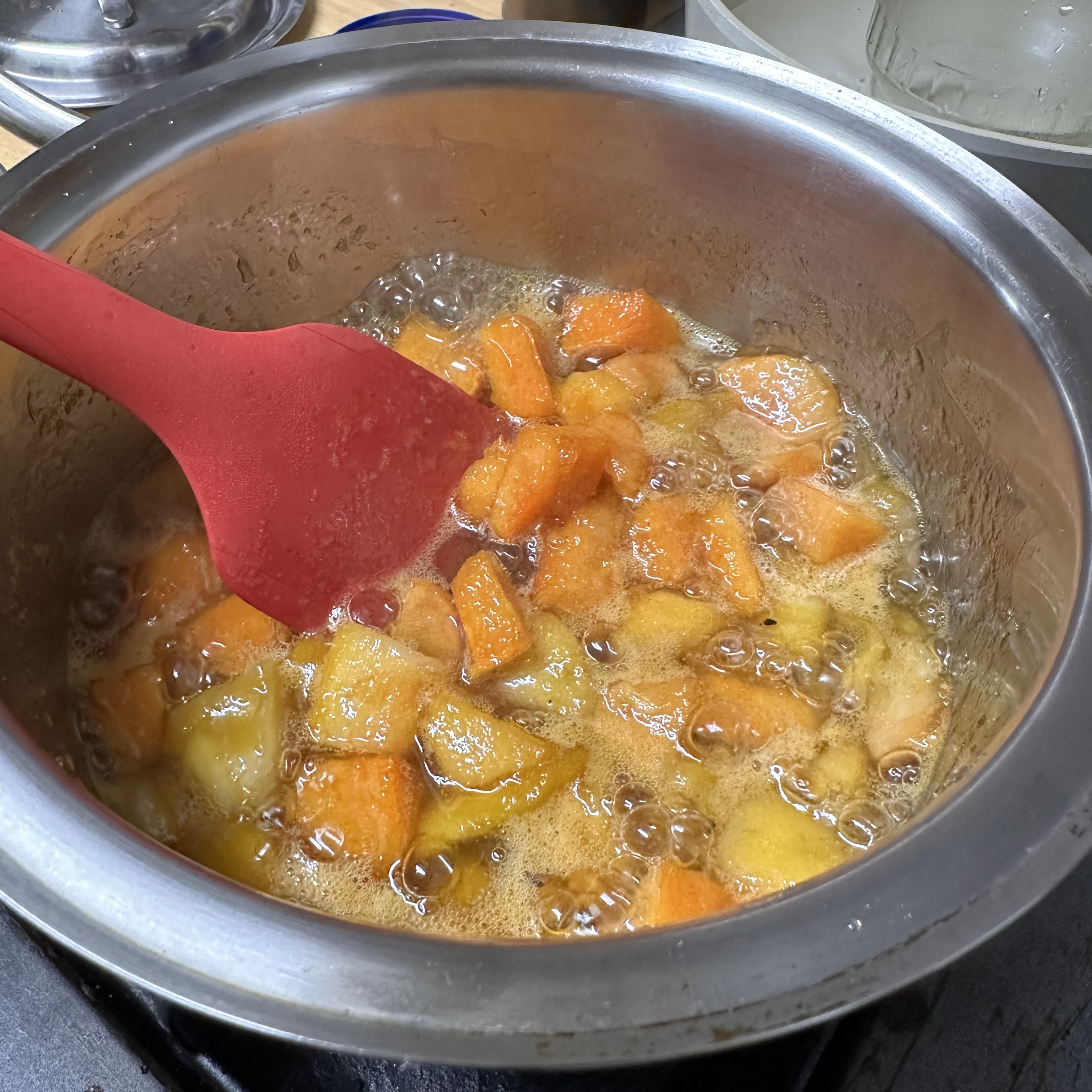 10분 더 끓여주시고 콩포트 담을 용기 열탕소독해줄게여