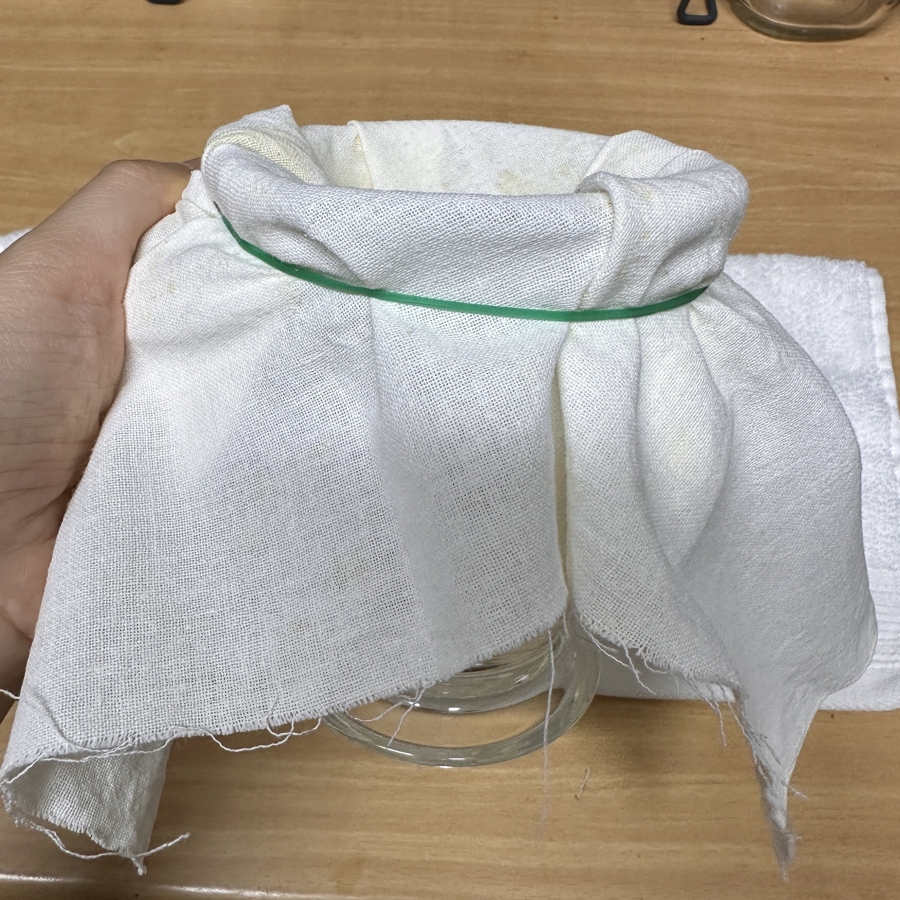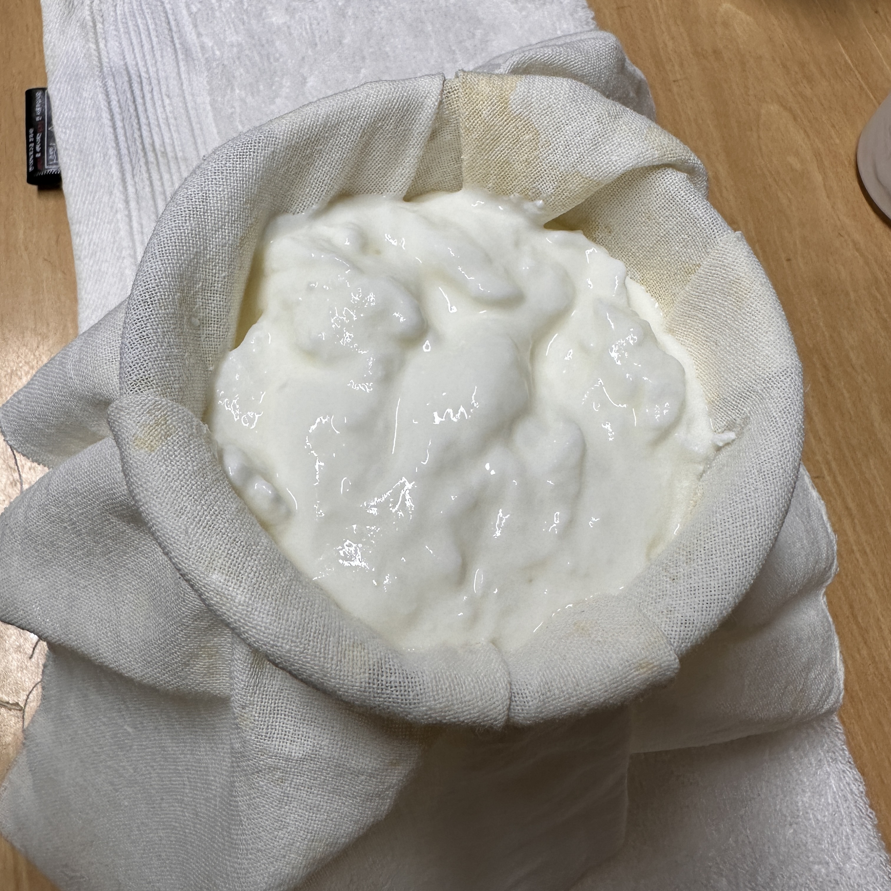 요거트를 부어주시고 중력으로 유청을 빼줍니다