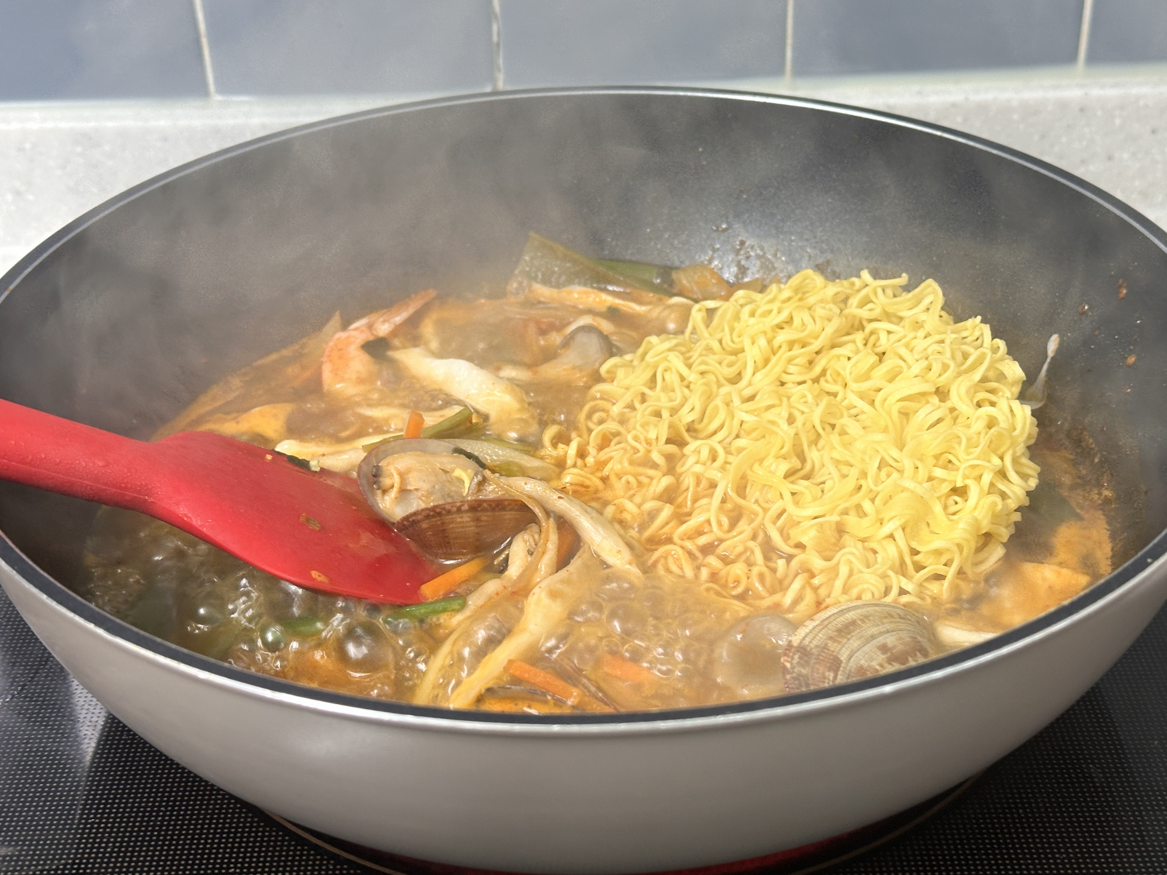 그 위로 싸악 부어주시면 신라면짬뽕 완성