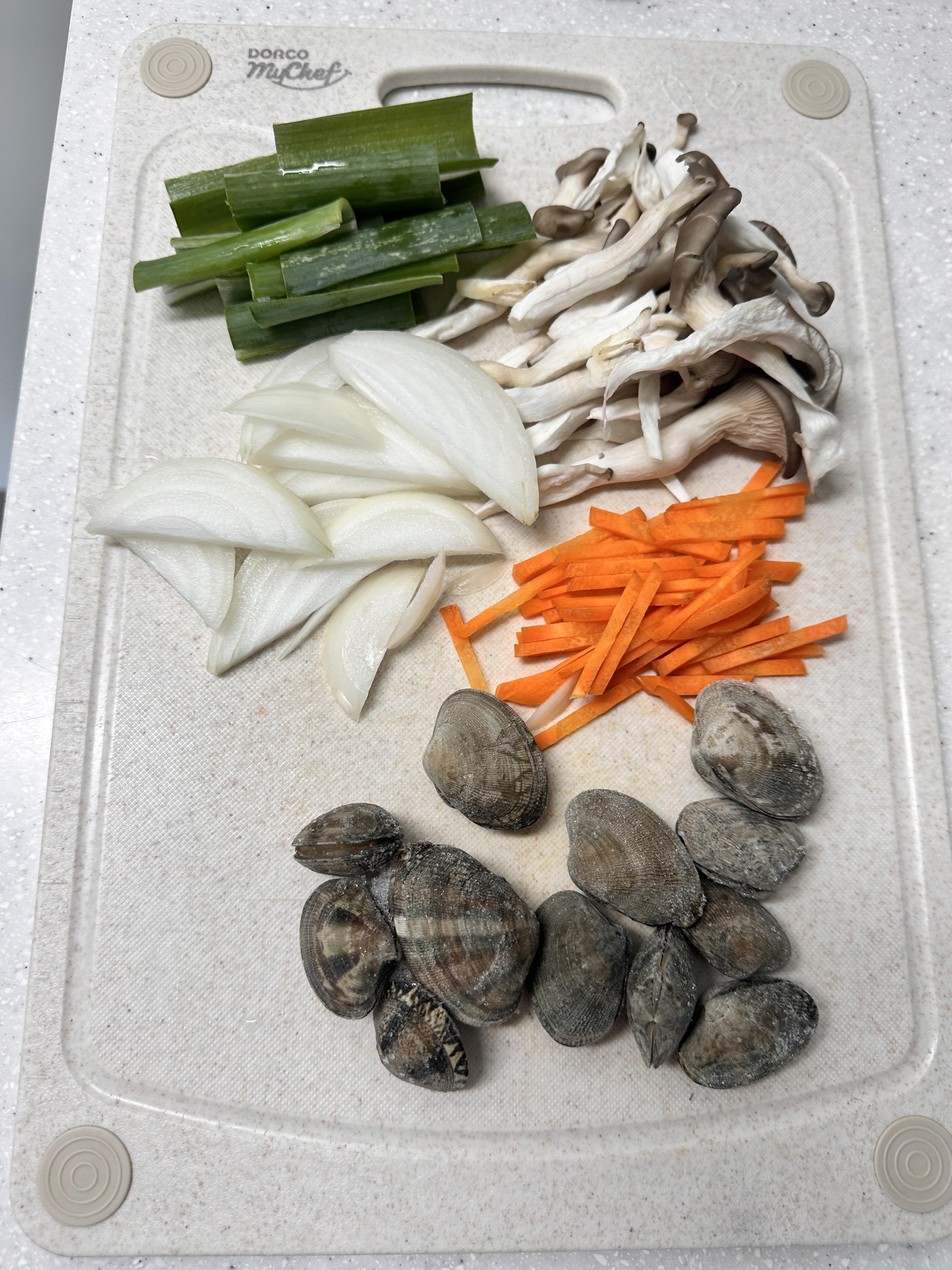 조개 입 벌어지면 면이랑 느타리버섯 넣어주고