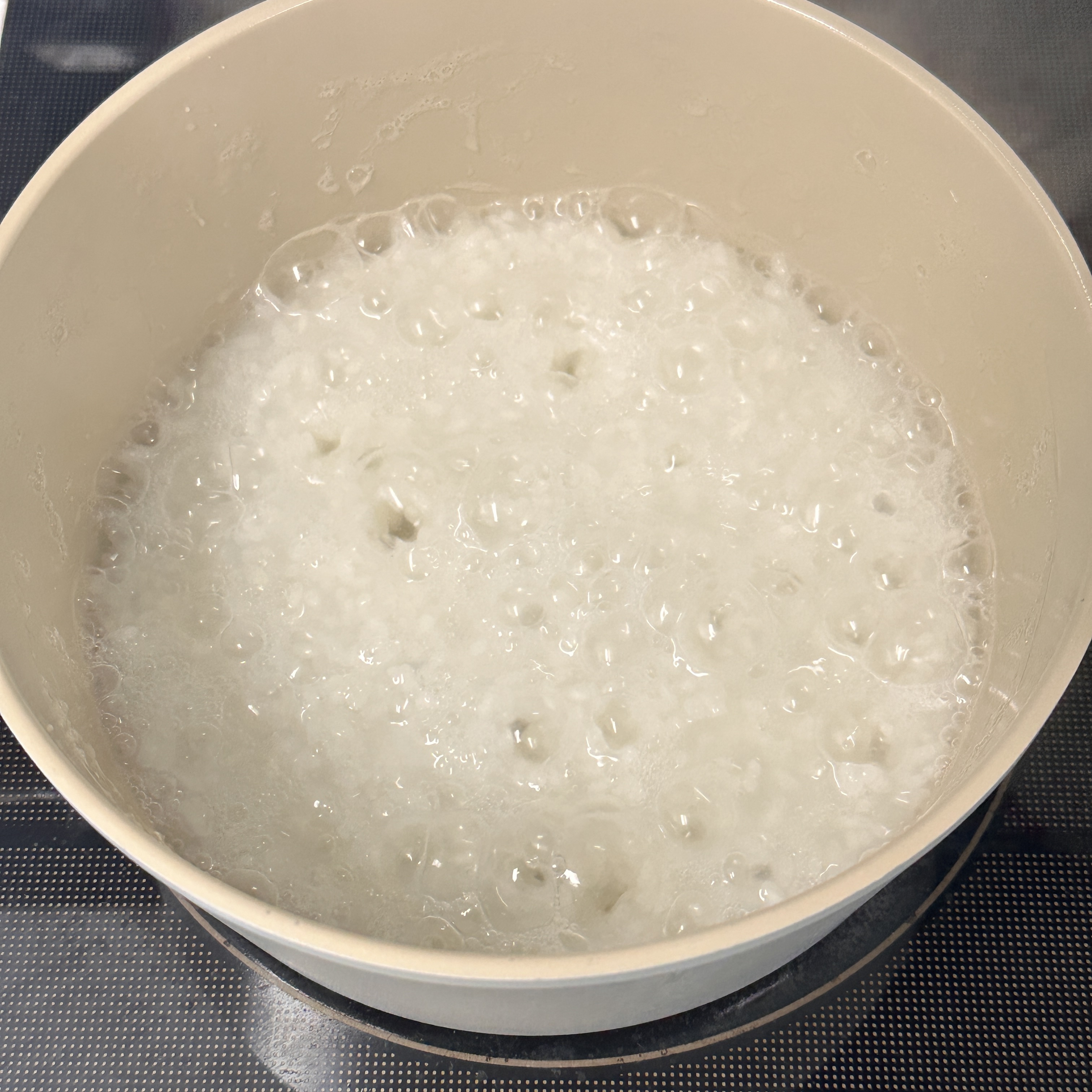 여기서 물 더 넣고 더 끓이면 흰 죽이 됩니다.